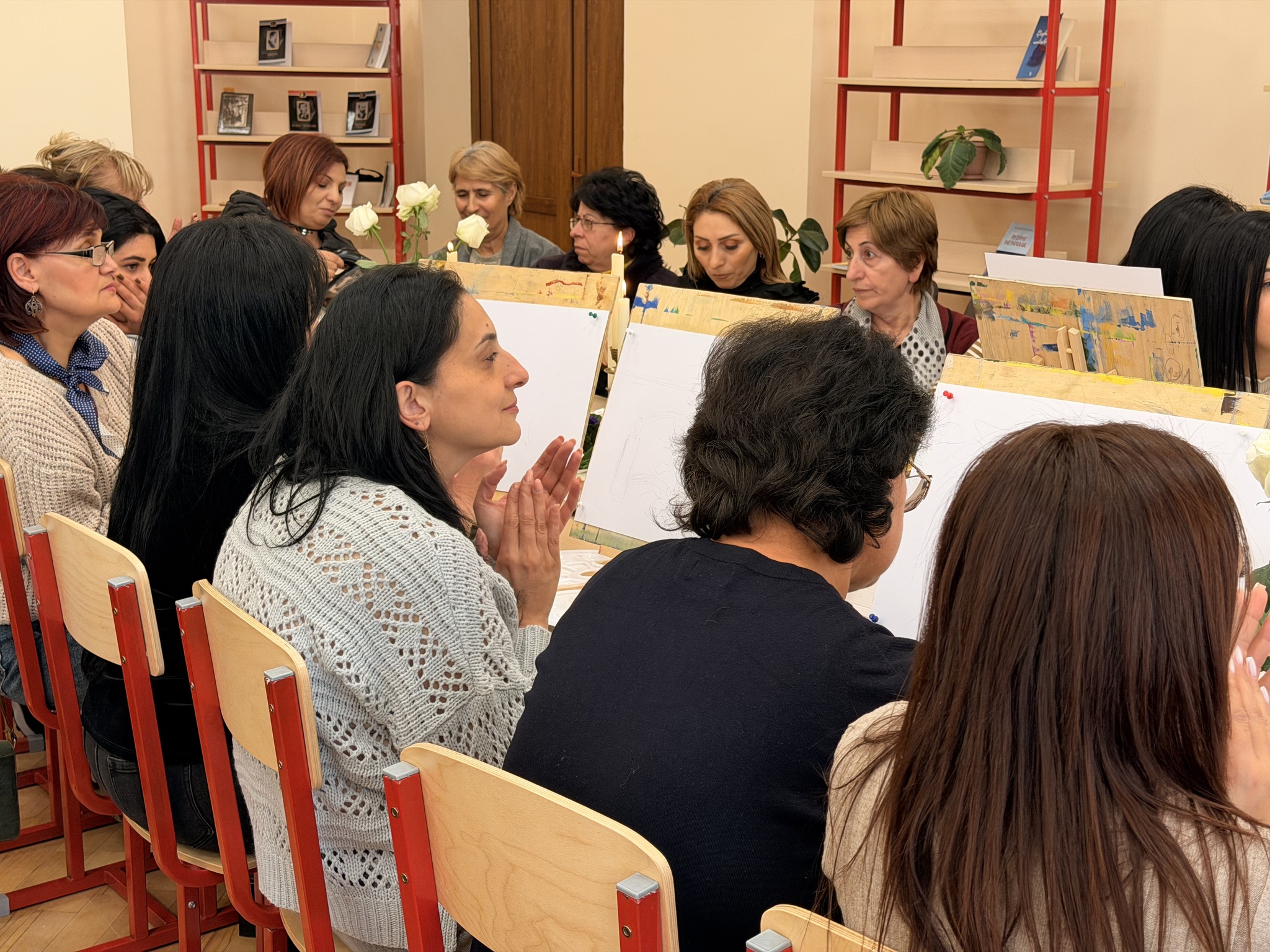 Այդ նպատակով այսօր կանանց ակումբում էին գրադարանի տնօրեն Հասմիկ Ավագյանը, գլխավոր գրադարանավար Սուսաննա Ֆահրադյանը, գրադարանավար Լուսինե Ստեփանյանը, ինչպես նաև Շահումյանի արվեստի դպրոցի նկարչության ուսուցչուհի Աննա Գինոսյանը, ով մասնակիցների համար կազմակերպեց արթ թերապիա` շիրազյան մոտիվներից ոգեշնչված: