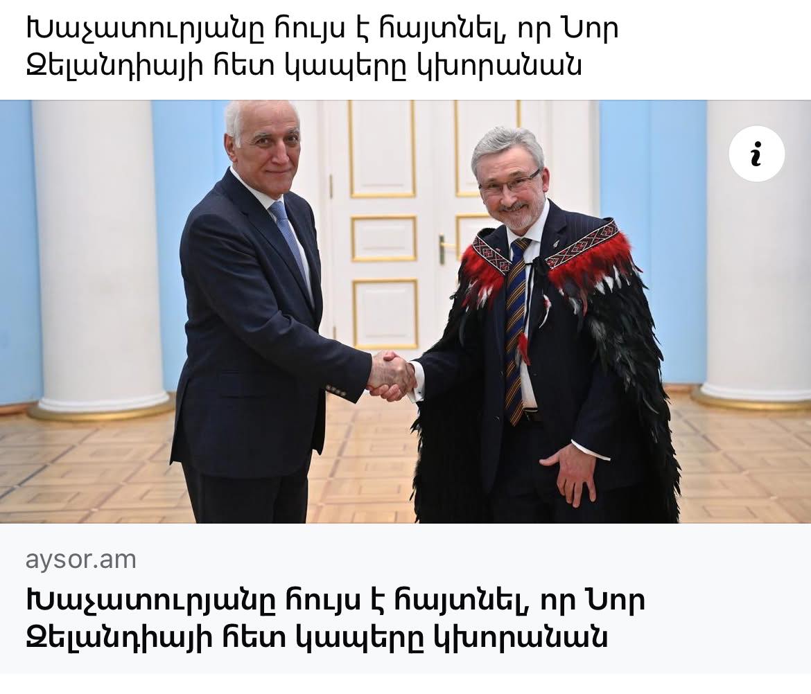 Գյումրի՜, Գյումրի՜… Տեսեք, թե ի՛նչ կարևոր լուր եք բաց թողել – շուտով Նոր Զելանդիայի հետ կապերն են խորանալու։ Մի հատ խորացե՛ք. Նոր Զելանդիայի հետ կապերը խորանալու են! Փաստորեն ինչ-որ անտեսանելի կապեր են եղել Նոր Զելանդիայի հետ, որոնք այսուհետ խորանալու են!