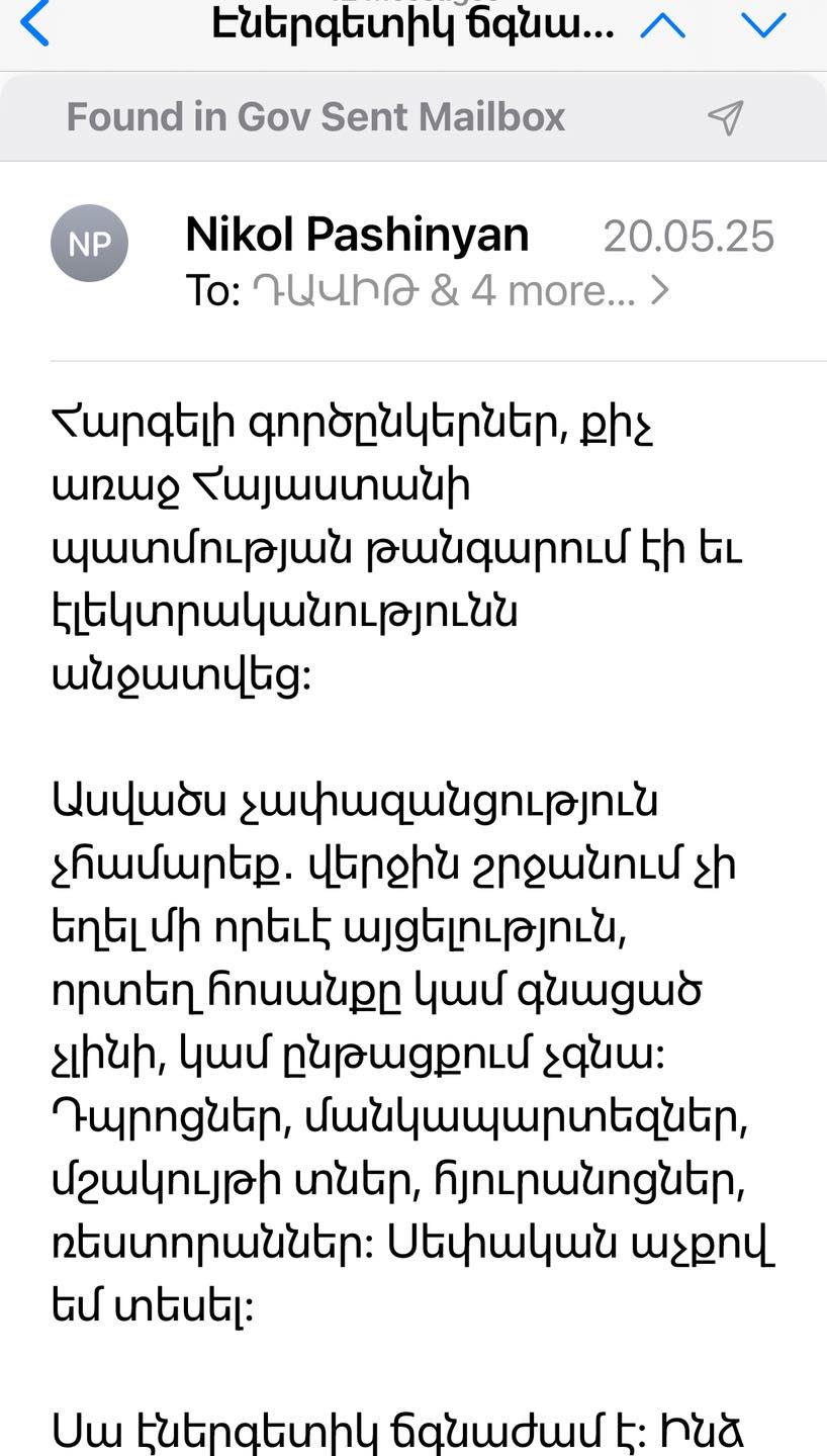 Ինչպես տեսնում եք նկարից՝ տվյալ հանձնարարականը տվել եմ 2025 թվականի մայիսի 20-ին։ Այդ հանձնարարականի մասին իմացել են, չէին կարող չիմանալ ՀԷՑ-ում եւ որոշել են «կանգնել եկեղեցու կողքին»։