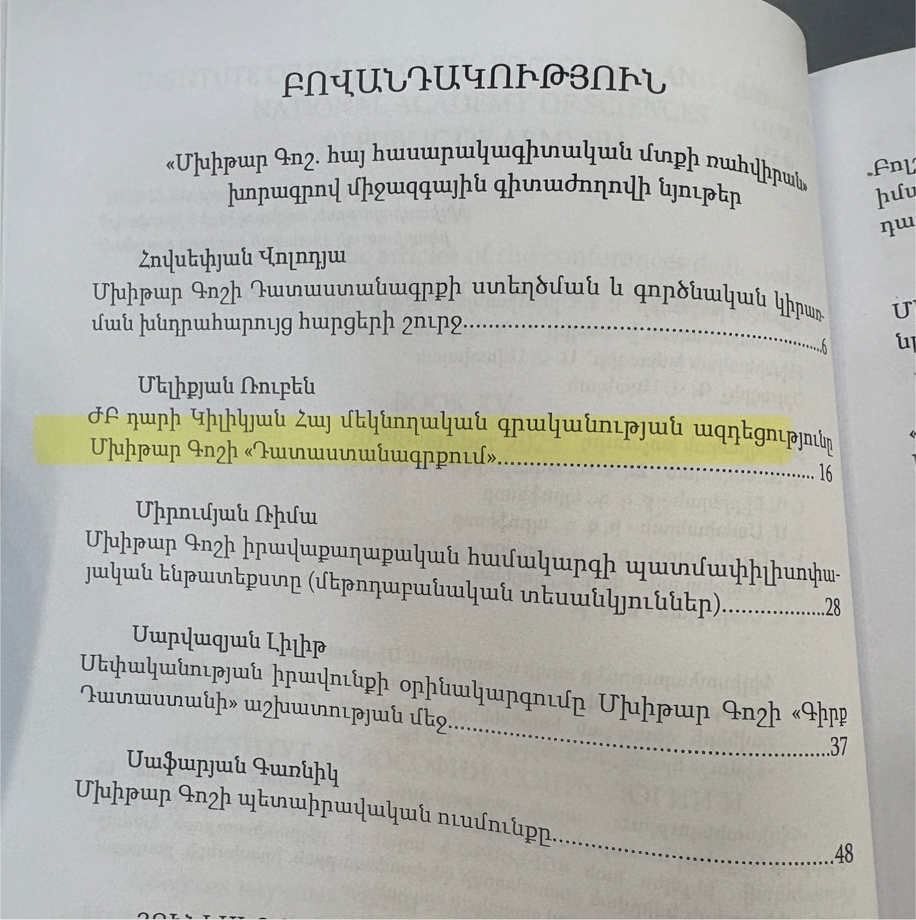 Ահավասիկ, լույս է տեսել այդ ուղղությամբ հերթական գիտական հոդվածս, որում կոնկրետ օրինակներով ցույց եմ տալիս, թե ի՛նչ մտքեր ու գաղափարներ է Մխիթար վարդապետ Գոշը ընդօրինակել Կիլիկյան հայ մեկնիչներից։